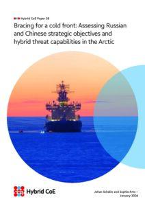 This Hybrid CoE Paper presents Russia’s and China’s long-term objectives in the Arctic, assessing how their capability, technology and infrastructure development, as well as broader civil-military cooperation, create the potential for future hybrid threats. The paper focuses primarily on civilian and multipurpose capabilities that support situational awareness, navigation and other activity in maritime and coastal environments.